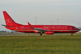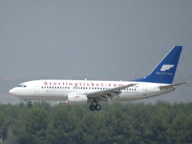 737 půjčená od Maersk Air, v částečných barvách původního provozovatele - Alpi Eagles, navíc s nestandardním nápisem společnosti Sterling
