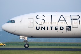 Přílet logojetu STAR ALLIANCE na pravidelné ranní lince z Houstonu.