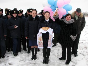 Vítání posádek a nových letadel L410 pro Krasnokutské letecké učiliště civilního letectví "po slovansku"... tedy chlebem a solí.