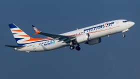 OK-SWN nově s reklamou na Tenerife odlétá z Prahy na ostrov Sal (SID).