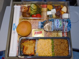 Snídaně v ekonomické třídě na letu Řím - Abú Zabí
