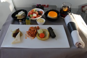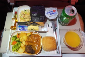 Svačina v obchodní třídě na lince Praha - Paříž