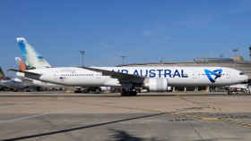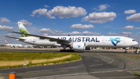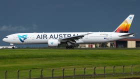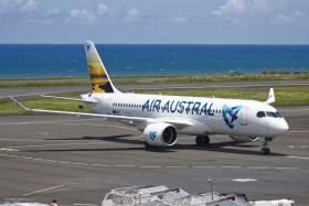 Pojíždění k odletu na Réunion krátce před západem slunce.