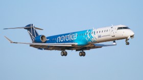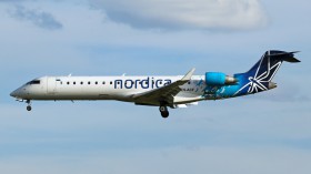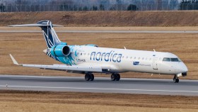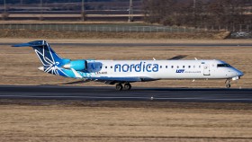 Canadiar RJ-900 demonstruje spolupráci Lotu a estonské Nordicy znaky obou společností. Nordica nahradila zkrachovaný Estonian Air a provozuje své lety pod kódovým označením Lotu.