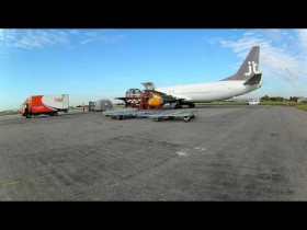 Příjezd letu WizzAiru z Londýna do Brna na apron v BRQ, z pohledu Marshallera.
