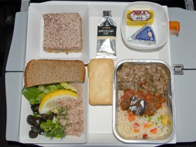 Lunch in economy class onboard Moscow - New York